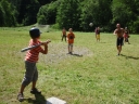 Holky ze 7. oddílu a kluci ze 8. oddílu si v pátek 24. 7. zahráli softball na fotbalovém hřišti. Ještě před zápasem nás Smutňák s Kačkou naučili chytat a házet míček a poté nám vysvětlili pravidla. Ze začátku to byla spíše zahřívačka, aby si všichni v praxi zkusili pravidla, ale asi po čtyřech hrách jsme už hráli jako profesionálové. Nejdříve byla hra vyrovnaná, ale rychleji se vzpamatovalo 1. družstvo, které vyhnalo výsledek na 23:2, ale ke konci druhé družstvo uhrálo aspoň bod a dohrálo zápas hrdě až do konce.