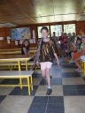 Ráno jsme se my (holky z 6. oddílu) docela dost vyblbly. Dostaly jsme totiž úkol, převlíct se za extravagantní modelky. Nejdřív šly na řadu vlasy: nabarvily jsme si je krepákem a různě svázaly do gumiček. Ještě před bláznivým nalíčením, jsme svůj obličej očistily pivní maskou. Také oblečení nezůstalo v normálu. Vybraly jsme ty nejkřiklavější modely, ke kterým skvěle padly i šminky. Po této náročné procedůře jsme předstoupily před velmi náročnou porotu - Píka a Žakuba. Hádejte, kdo skončil první?! Model "Sedlák z Brna", nebo také "Holínka" získala Marta. Na druhém místě byl "Malíř" - čili Lena a "Barevná kabelka" - čili Pája. Ostatní modelky skončily na třetím místě. Naše dopoledne bylo velice zábavné.
