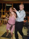 ve společenském oděvu, páni s kravatou či motýlkem a dámy ve večerních róbách. Po krátké výuce společenských tanců