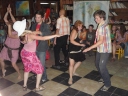 ve společenském oděvu, páni s kravatou či motýlkem a dámy ve večerních róbách. Po krátké výuce společenských tanců