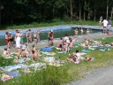 Dnes poprvé k nám přišla vlna tropických veder. Teploměr se nám odpoledne vyšplhal až na kulatých 30 stupňů Celsia. Takže velkou část odpoledne jsme se chladili a koupali v našem bazénu. Čerpadlo s hadicí nám navíc vytvořilo vodní mlhu, která zchladila i ty co do vody buď nechtěli, nebo na koupání s odddílem čekali. Dle předpovědi nás zítra čeká stejné, nebo ještě větší vedro, takže odpoledne zase hurá k bazénu.