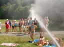 Dnes poprvé k nám přišla vlna tropických veder. Teploměr se nám odpoledne vyšplhal až na kulatých 30 stupňů Celsia. Takže velkou část odpoledne jsme se chladili a koupali v našem bazénu. Čerpadlo s hadicí nám navíc vytvořilo vodní mlhu, která zchladila i ty co do vody buď nechtěli, nebo na koupání s odddílem čekali. Dle předpovědi nás zítra čeká stejné, nebo ještě větší vedro, takže odpoledne zase hurá k bazénu.